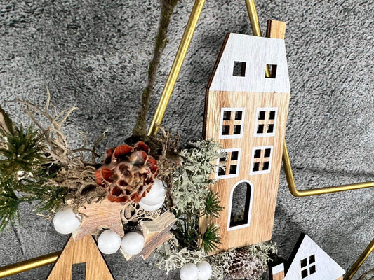 Stern 50cm mit Haus Häuser Fensterdeko Türkranz Advent Modern Fenster Fensterschmuck Deko Weihnachten Wandschmuck Metallstern Winter