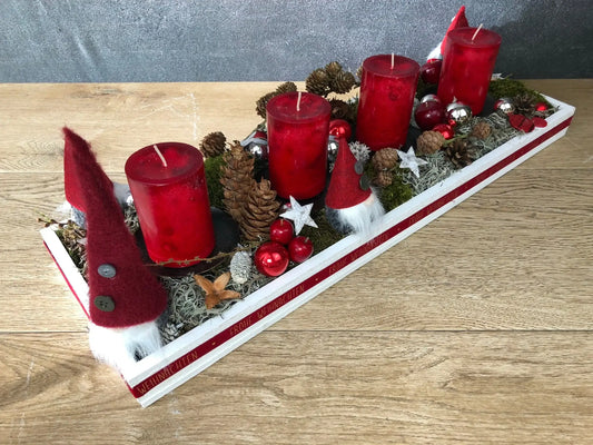 Adventskranz Adventskalender Wichtel Modern Länglich Balken Tablett in zwei Größen L und XL