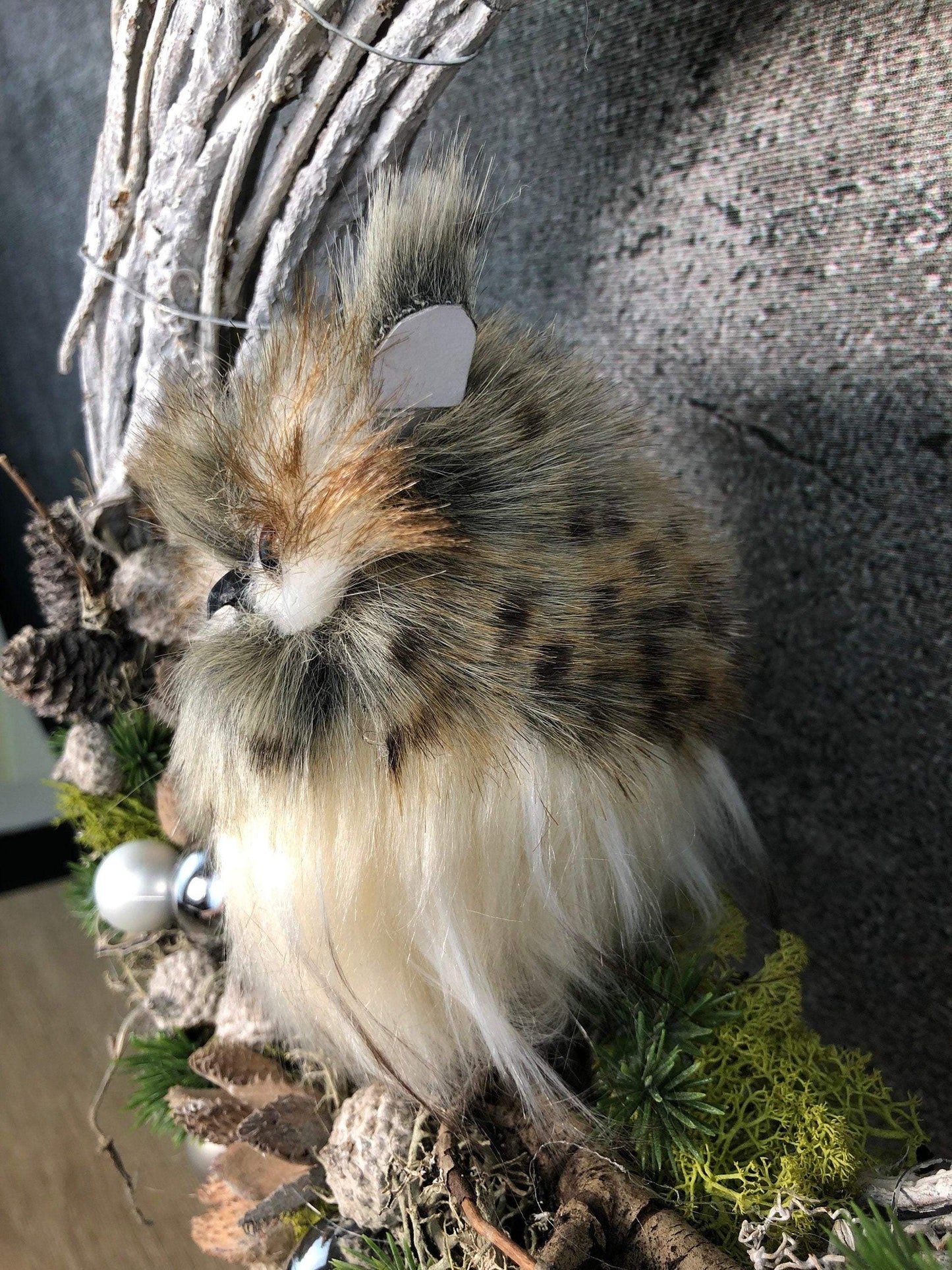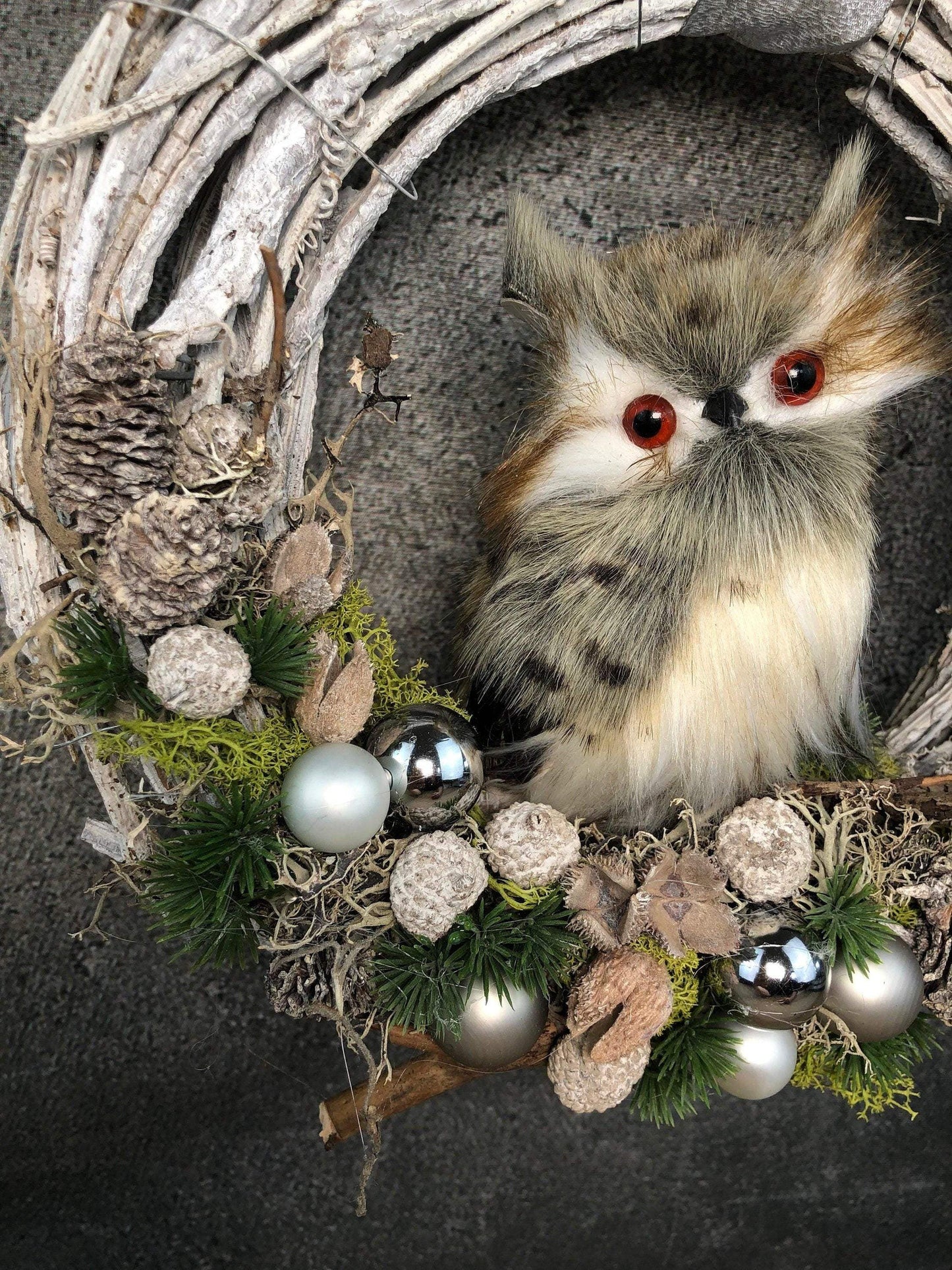 Advent Türkranz Türdeko Türschmuck Weihnachten Eule Kautz Moos Weide Zapfen mit LED